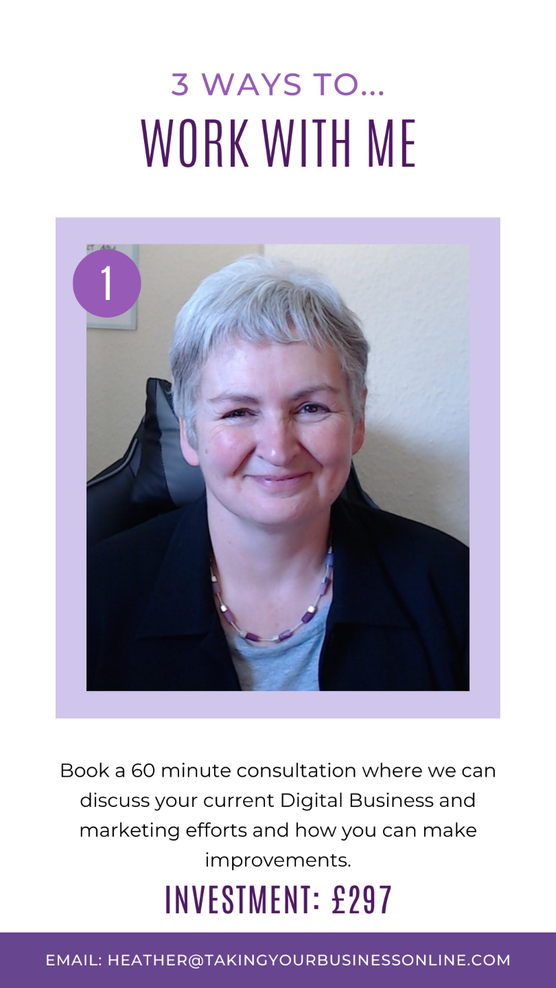 Heather Masters is the founder of Taking Your Business Online and was born and raised in the North of England. She’d love to say it was warm and sunny but ‘atmospheric weather’ seems more fitting. After a lifetime of being a bit of a nomad, she now resides in the beautiful Northumberland National Park and runs her business from her home. For the last 25+ years, Heather has leveraged her variety of expertise to help small businesses and Entrepreneurs with strategy, technical writing and support, project management, systems and processes and Online/Digital marketing, to grow and evolve their businesses.